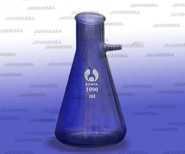 ارلن شیشه ای آزمایشگاهی خلاء 1000 میلی لیتر، دارای خروجی ویژه در یک سمت دهانه است.
